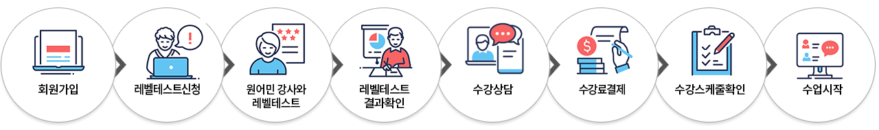 회원님이 예약한 시간에 레벨테스트와 체험수업을 실시해 드립니다.